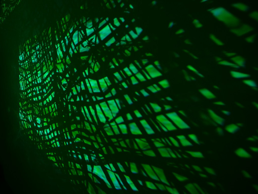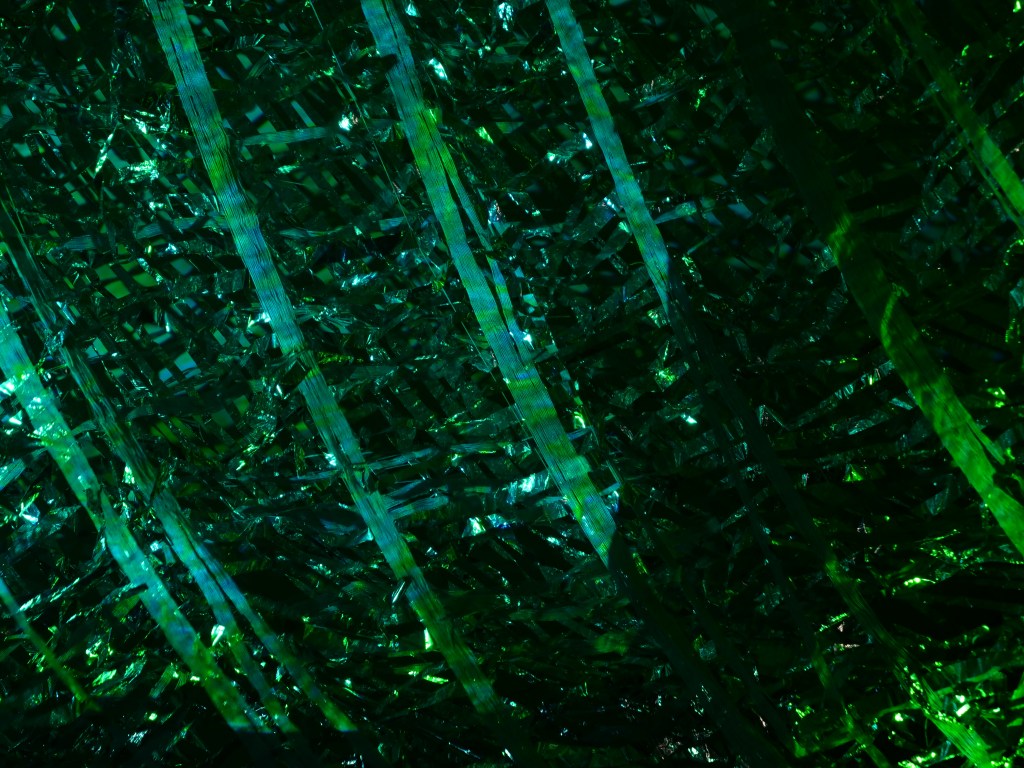 Caught in a Wormhole is the collaborative installation by artist duo VavNet (Vav Vavrek and Annette Heully.) This work combines elements of video and sonic projections with hand woven sculpture that interacts with its surroundings and architecture. The woven sculpture is created from silver cotton and stripped space blankets. By using the space blankets, the piece evokes conversations of climate change, the border wall and space travel. The space blanket encompasses the need for protection and human resourcefulness. The piece is translucent but also reflective so the viewer can simultaneously see themselves and past themselves. In this installation at Flux, several variations of video will be projected to play upon the weaving, while the harmonics of the droning sound will play about the modified space and the fluttering and rustling weaving.