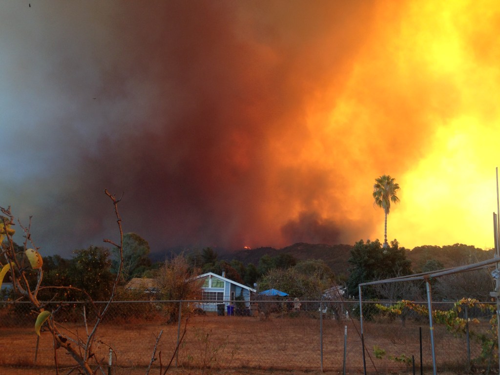 “Fire and Rain” was inspired by the Thomas Fire which impacted Annette’s home town of Ojai, CA in 2018. The piece references the view from the artists backyard of the flaming hillside, seen just before she evacuated.