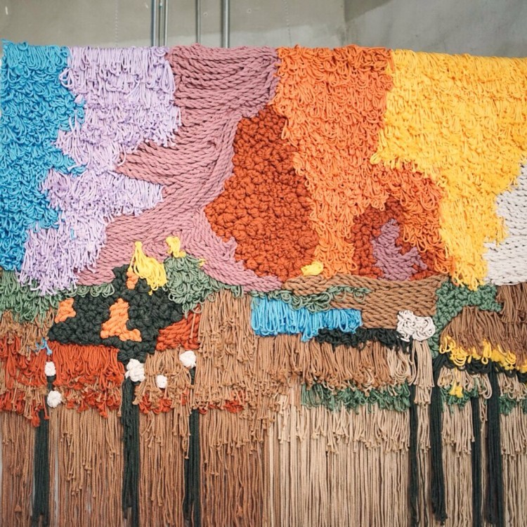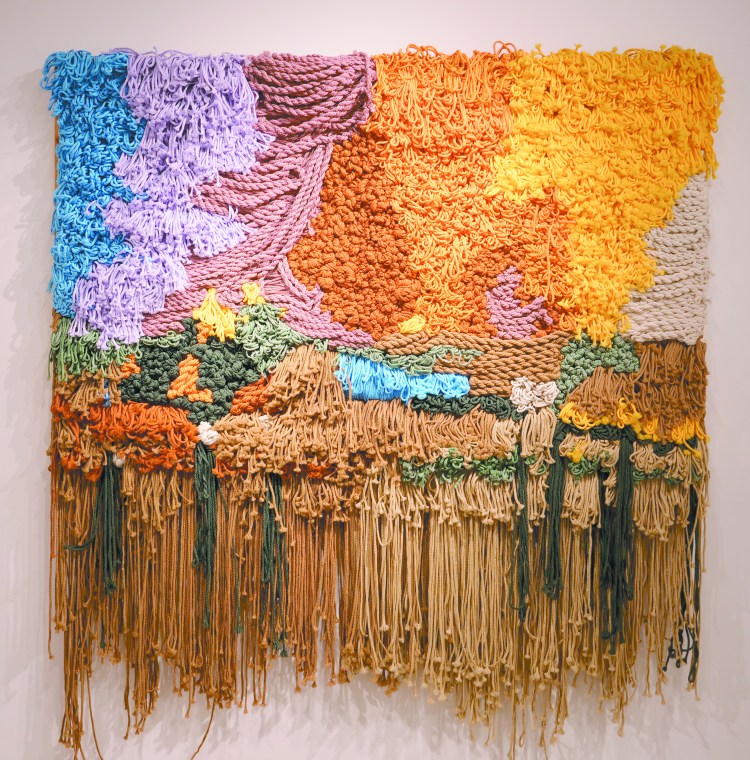 “Fire and Rain” was inspired by the Thomas Fire which recently impacted Annette’s home town of Ojai. The piece references the view from the artists backyard of the flaming hillside, seen just before she evacuated.